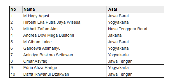 List pebalap yang lolos seleksi Astra Honda Racing School: